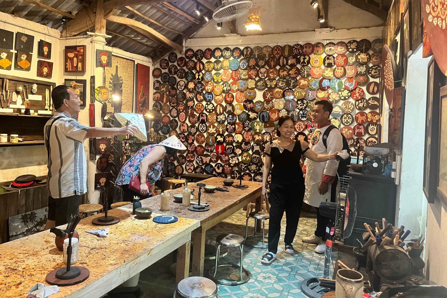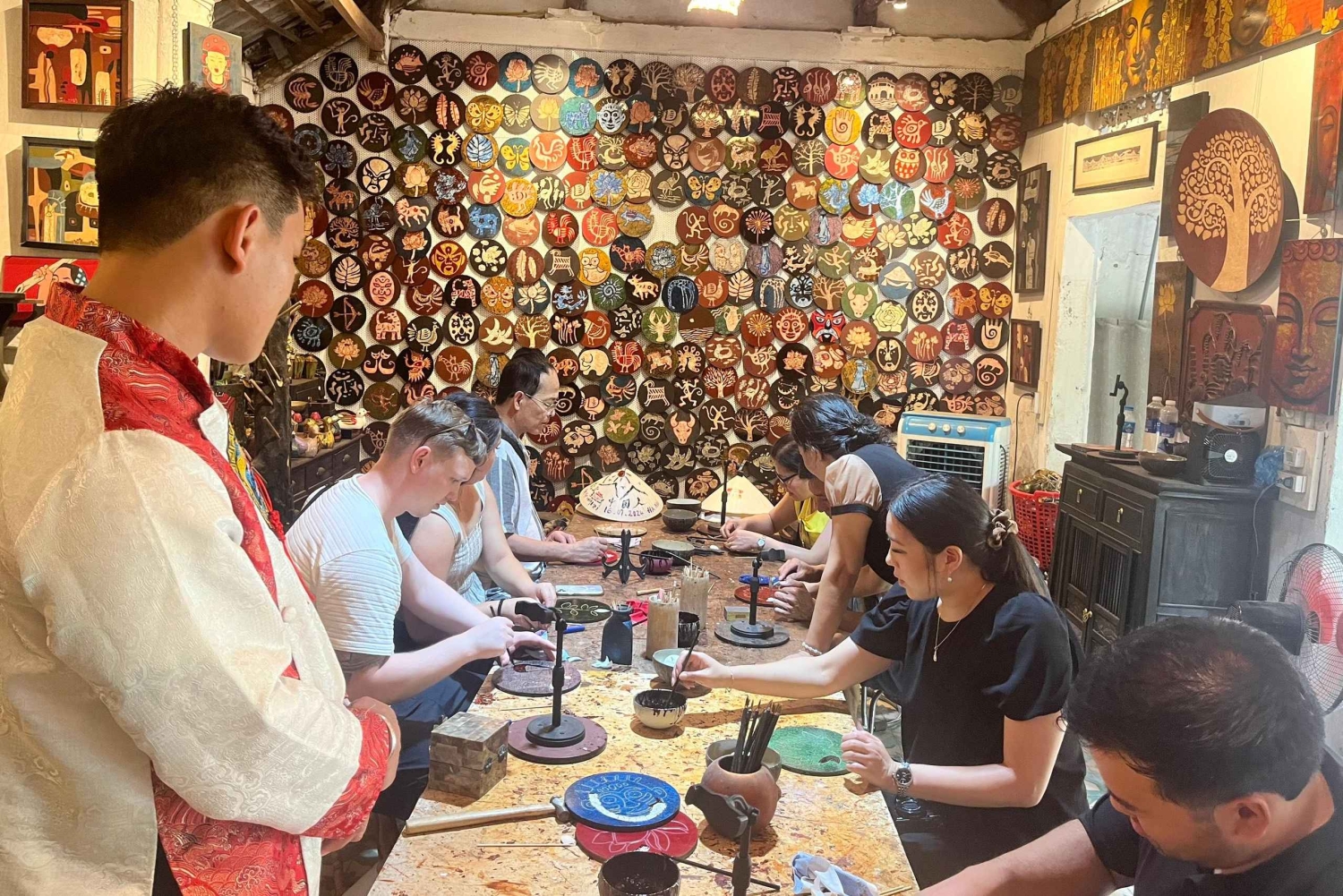 Visita a casa de um artista local na aldeia para conhecer o processo de produção de produtos de arte em laca e ter a oportunidade de pintar uma laca. Finalmente, volta para o autocarro e segue de volta para o centro da cidade de Hanói e para a Rua do Comboio (opcional)