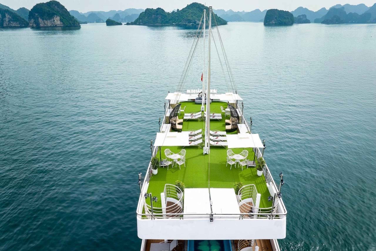 - Explora a Baía de Ha Long: gruta Sung Sot, caiaque na gruta Luon, mergulho na ilha Titop