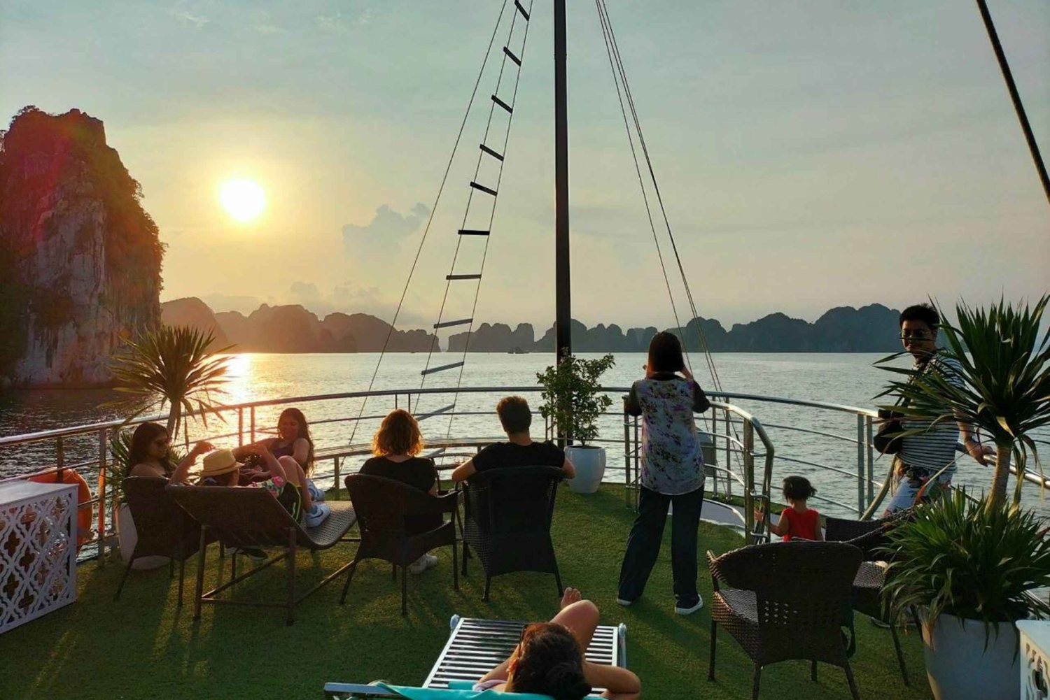 ✅ Haverá 3 paragens turísticas na Baía de Ha Long: Ilha Titop, Gruta Luon e Gruta Sung Sot. Cada local fica perto e o barco demora cerca de 5 minutos a chegar ao próximo. Após cada visita, vais voltar ao barco e seguir para o próximo destino. Antes de chegares, o guia turístico vai partilhar detalhes essenciais sobre a próxima atividade. Se quiseres participar, segue o guia; caso contrário, podes relaxar no barco.