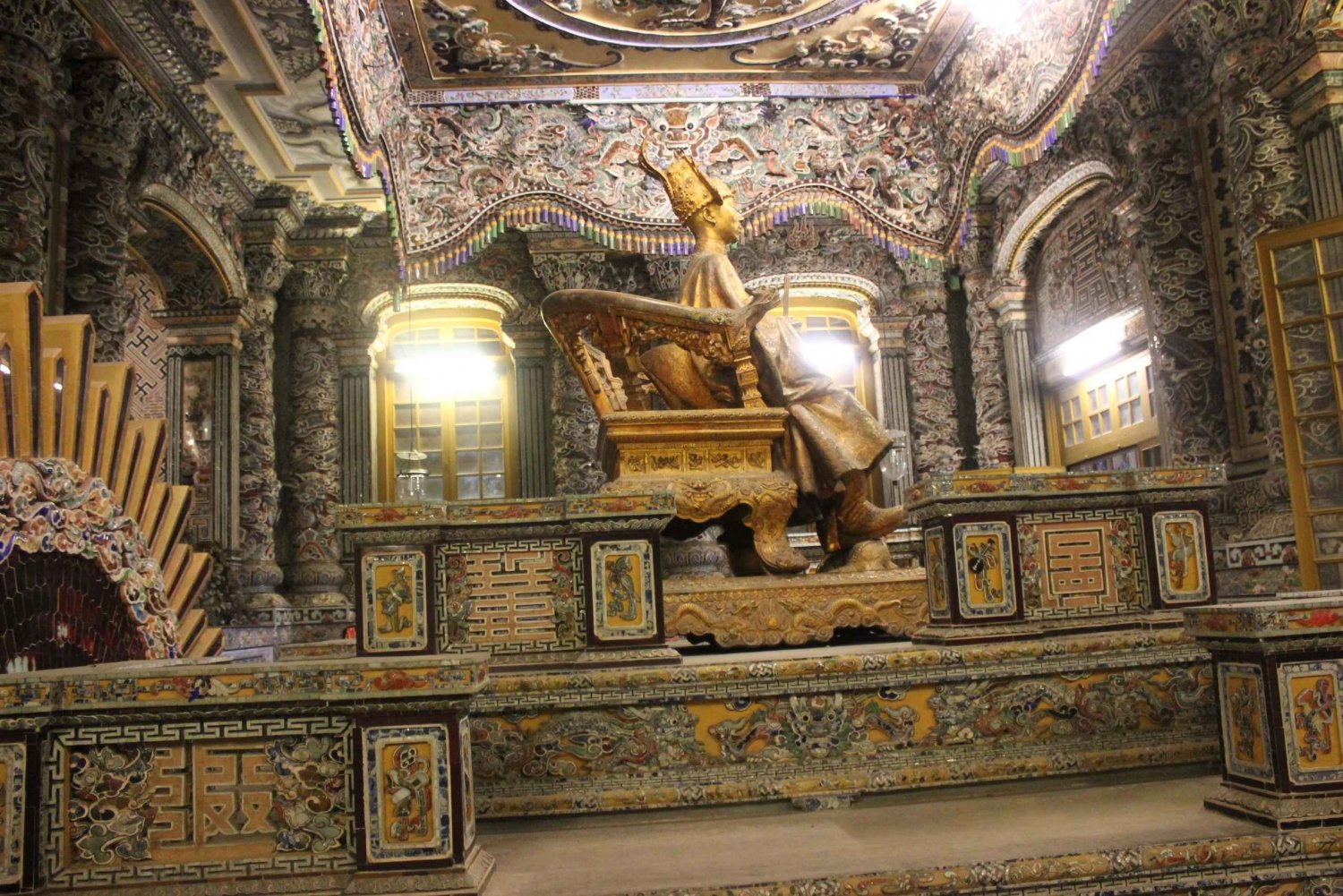 1. Visita o Túmulo de Khai Dinh, o local de descanso final do Imperador Khai Dinh. Este túmulo destaca-se pela sua fusão única de estilos arquitectónicos orientais e ocidentais e ostenta obras de arte e decorações impressionantes.