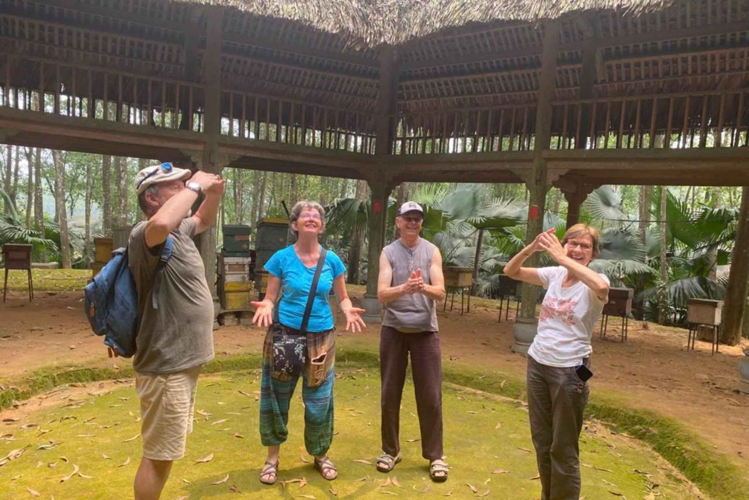 • Iniciação à confecção de pratos típicos: Bánh Gai (bolo de arroz glutinoso com gergelim preto), Thịt treo gác bếp (linguiça de búfalo)