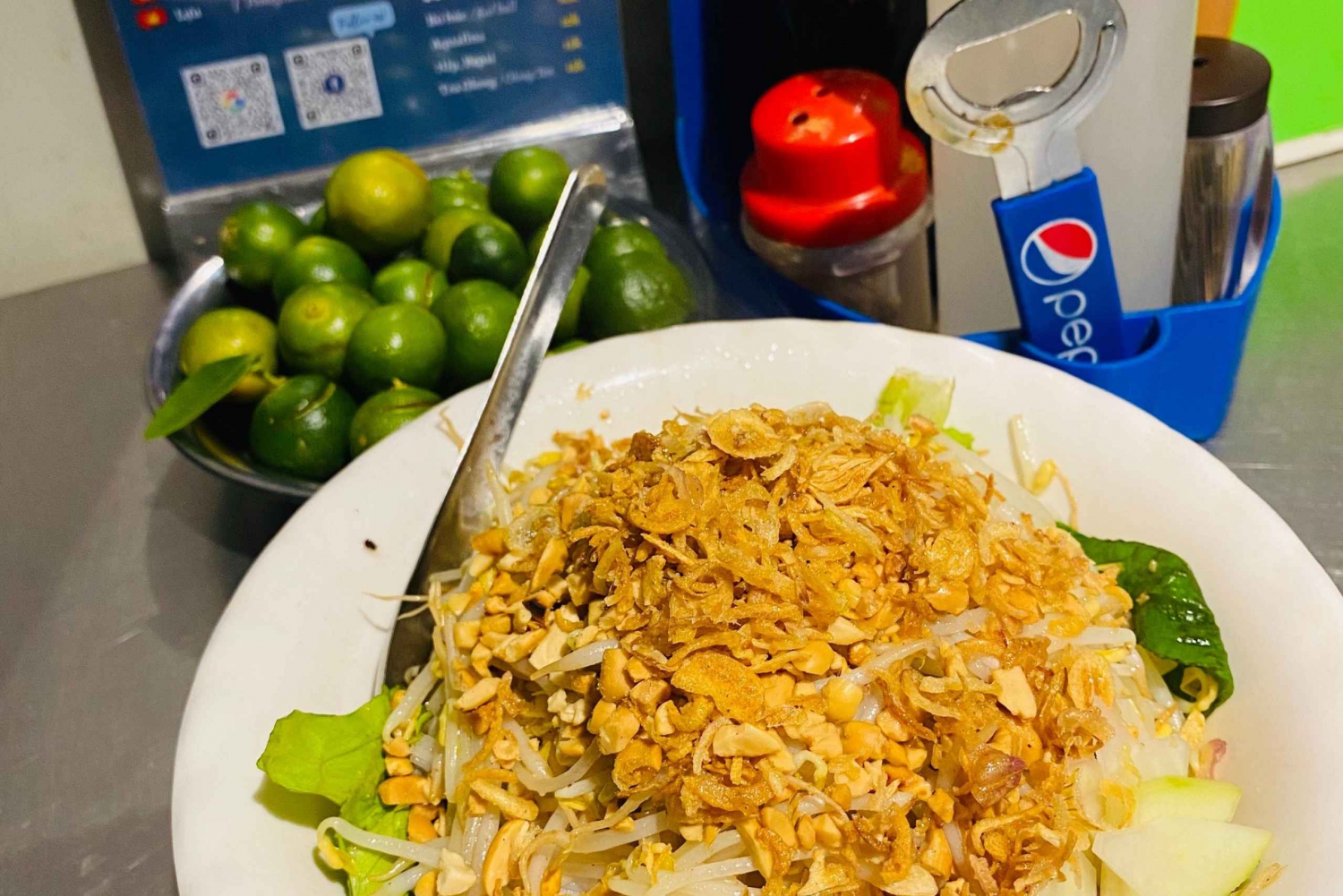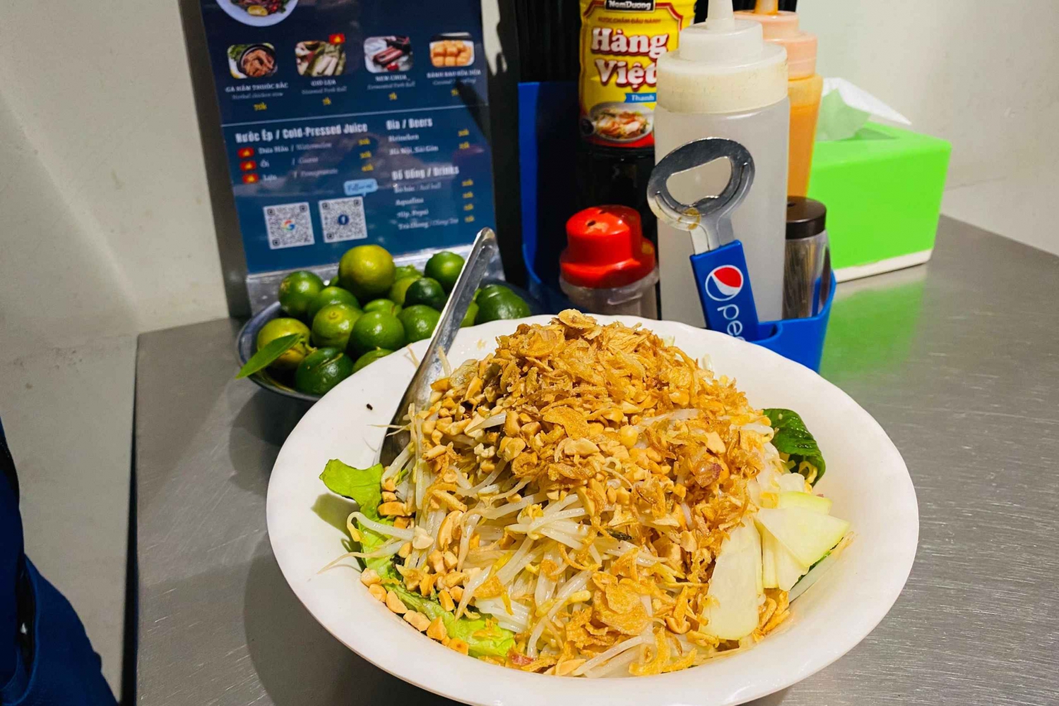Мы попробуем разнообразные веганские блюда вьетнамской кухни, в том числе бань да чай, вегетарианский вьетнамский хлеб, сок сахарного тростника, салат с лапшой, местные пончики, салат из папайи, знаменитое вьетнамское свежее пиво (или биа хой), десерт и многое другое. Так что приходите натощак!