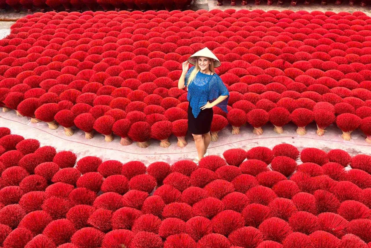 Откройте для себя вьетнамские ремесла во время увлекательной экскурсии с гидом из Ханоя. Вы познакомитесь с местным мастером, посетите историческую деревню, где изготавливают благовония, и узнаете о процессе изготовления конических шляп. Получите уникальный взгляд на местную культуру, открыв для себя детализированные ремесленные изделия.