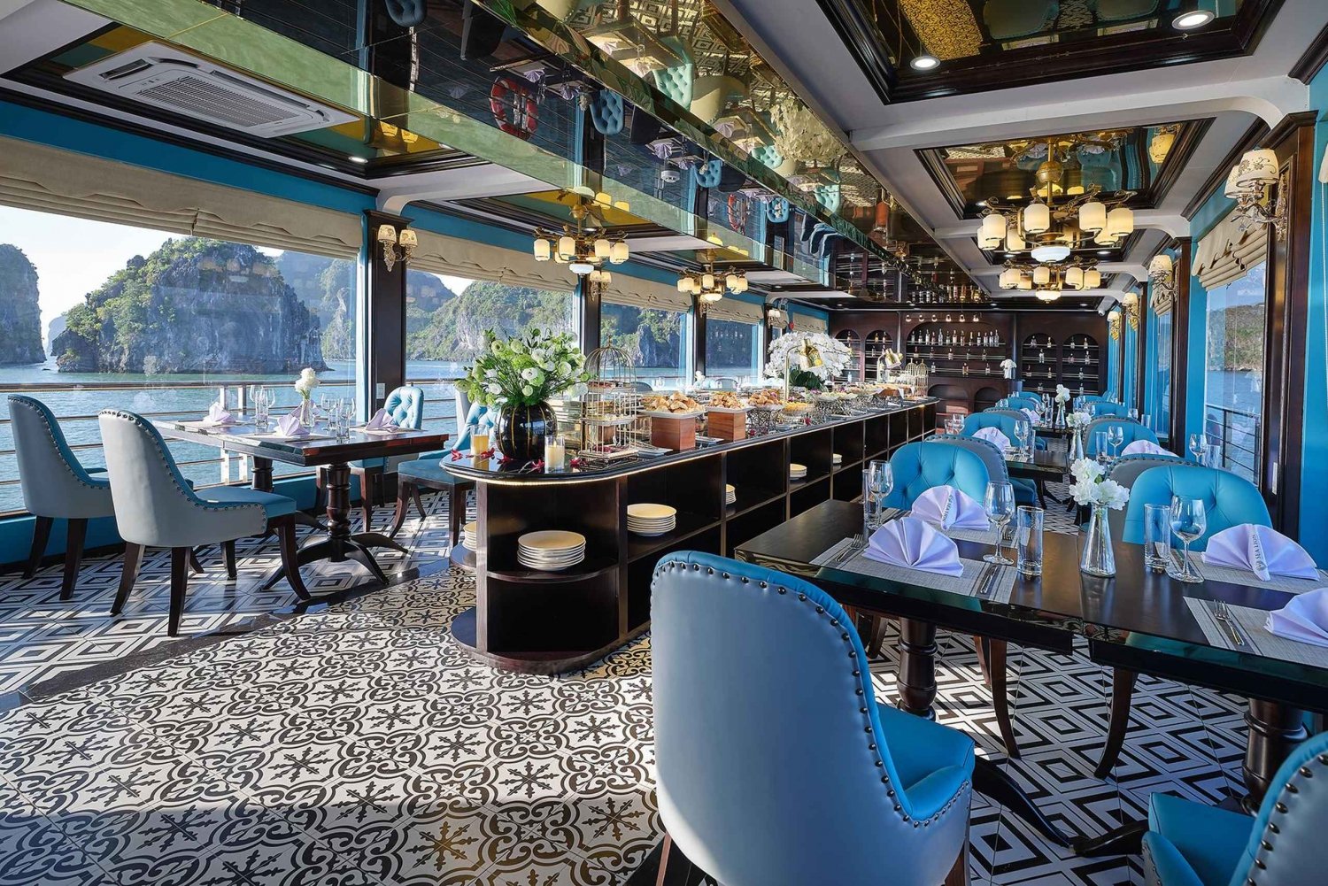 Начните свой день с трансфера из отеля в Ханое и отправляйтесь в бухту Халонг. Остановитесь на короткую передышку, чтобы отдохнуть, прежде чем прибыть в гавань. Поднимитесь на борт 5-звездочного круизного лайнера Sea Lion и насладитесь обедом 'шведский стол' во время круиза по заливу.