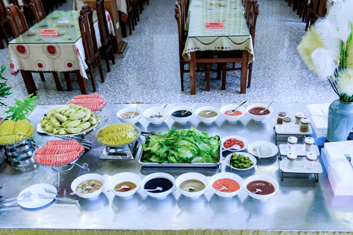 11.45: Ät en lunchbuffé i restaurangen med många lokala rätter som getkött, fisk, kyckling och stekt ris. Vegetariska rätter finns alltid tillgängliga i lunchbuffén.