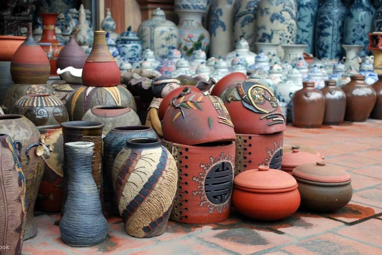 Senare kan du se hantverkare forma, måla och glasera sina produkter på traditionellt sätt och prova att göra din egen mössa, vas eller skål. Avsluta turen genom att återvända till ditt hotell, avsluta utforskningen av stadens kulturella och historiska höjdpunkter i Bat Trang Pottery Village.