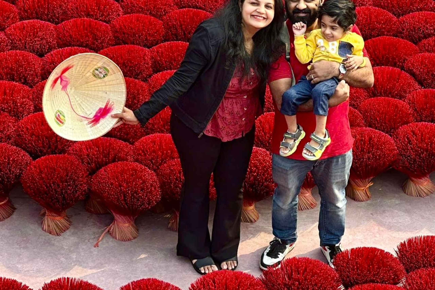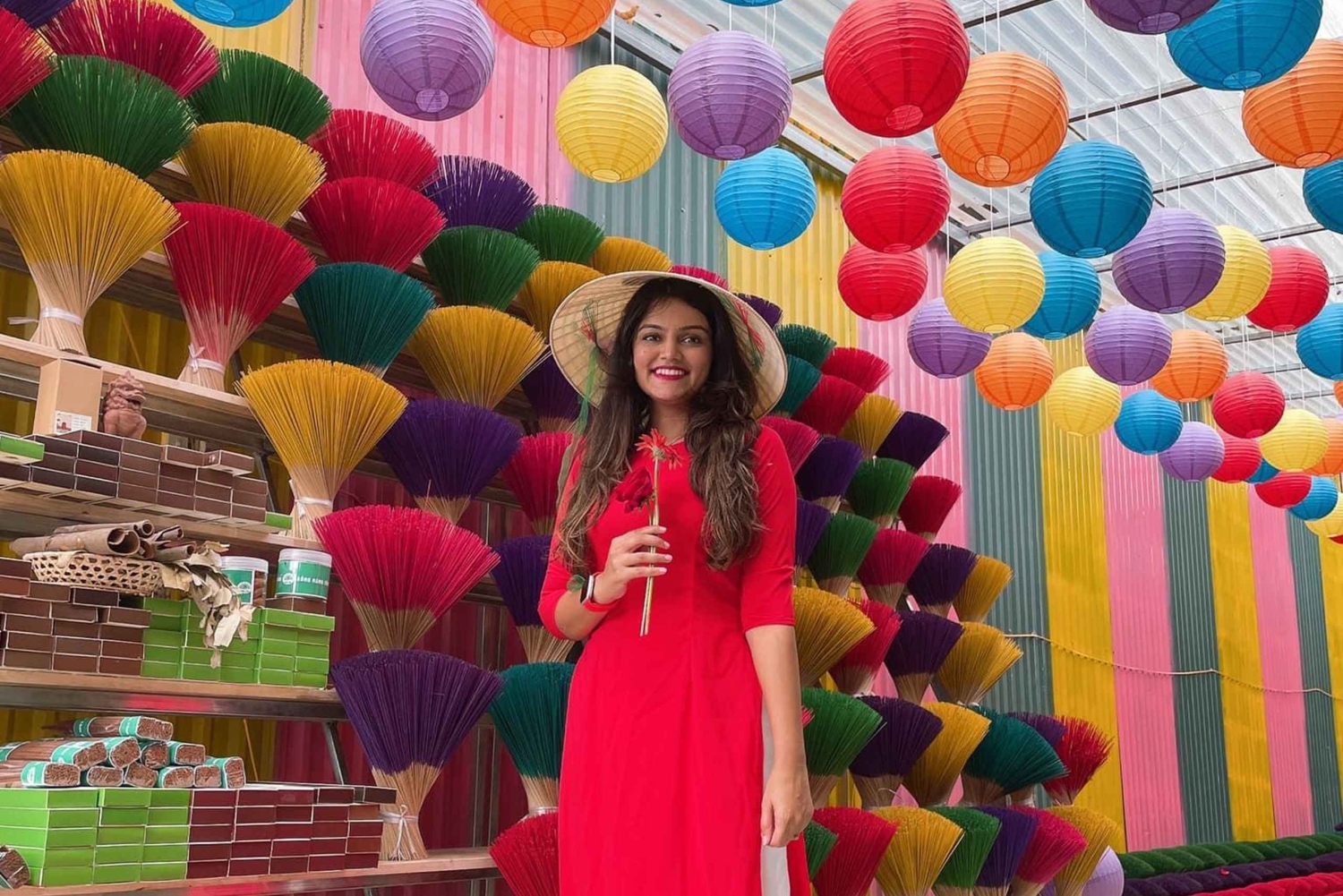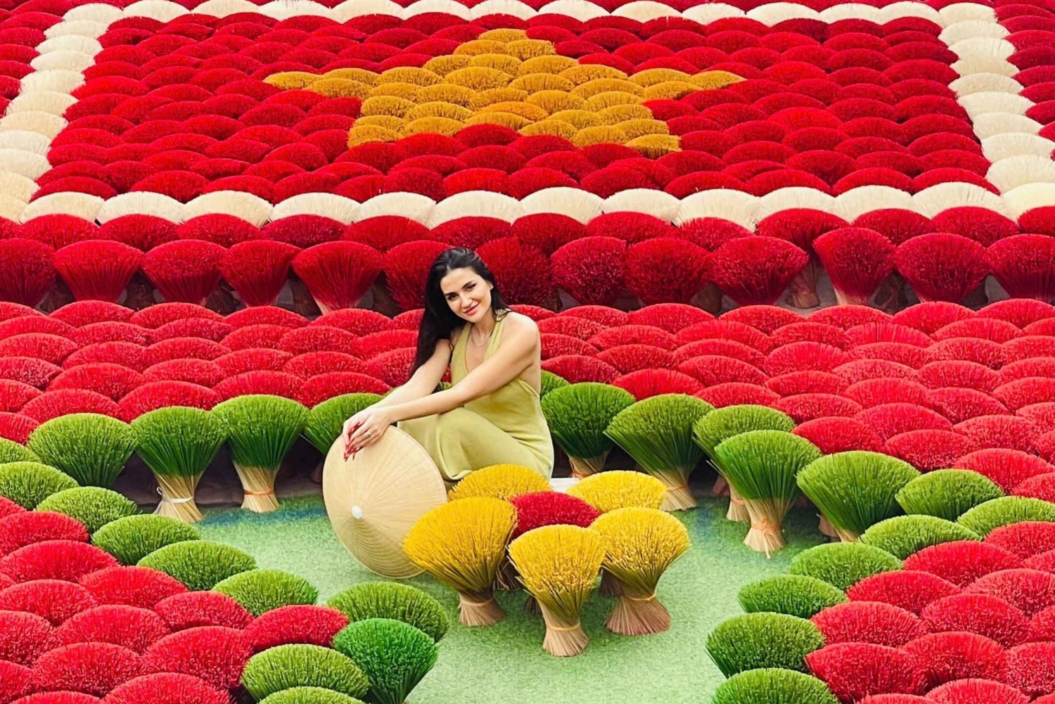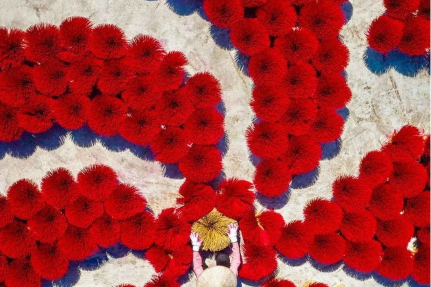 Åk vidare till byn Quang Phu Cau, som har producerat rökelse i över 100 år. Ta en promenad till byns centrum och se hur lokalbefolkningen gör rökelse på hantverksmässig, familjemässig skala.