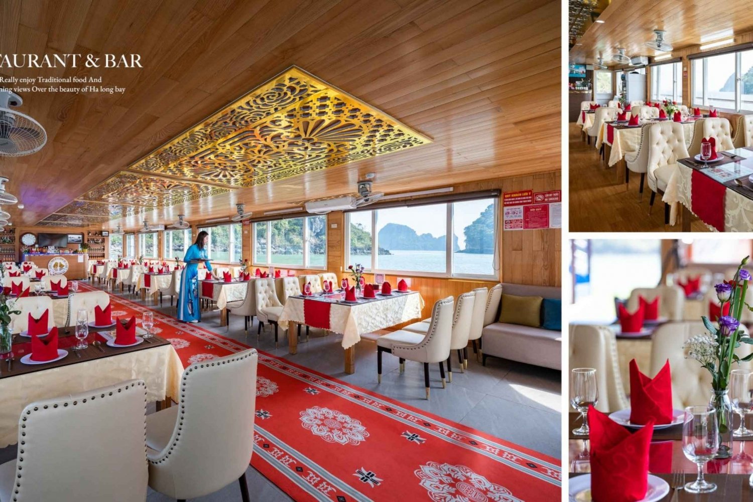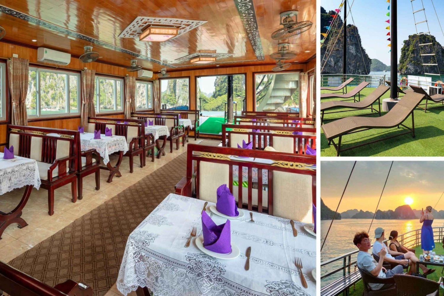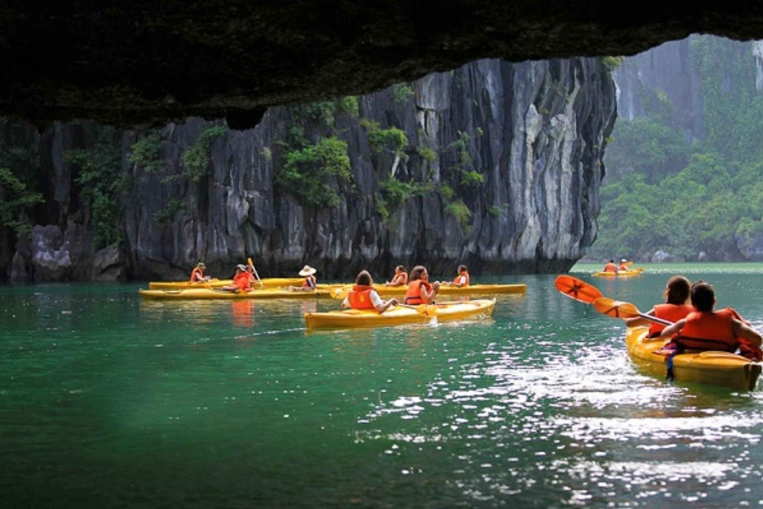 Njut av 6 timmars kryssning i Halong Bay som 2-dagars kryssning, du får chansen att besöka 2 vackraste platser i Halong Bay, Sung Sot Cave med kajak och utforska Titop Island med simning och vandring.