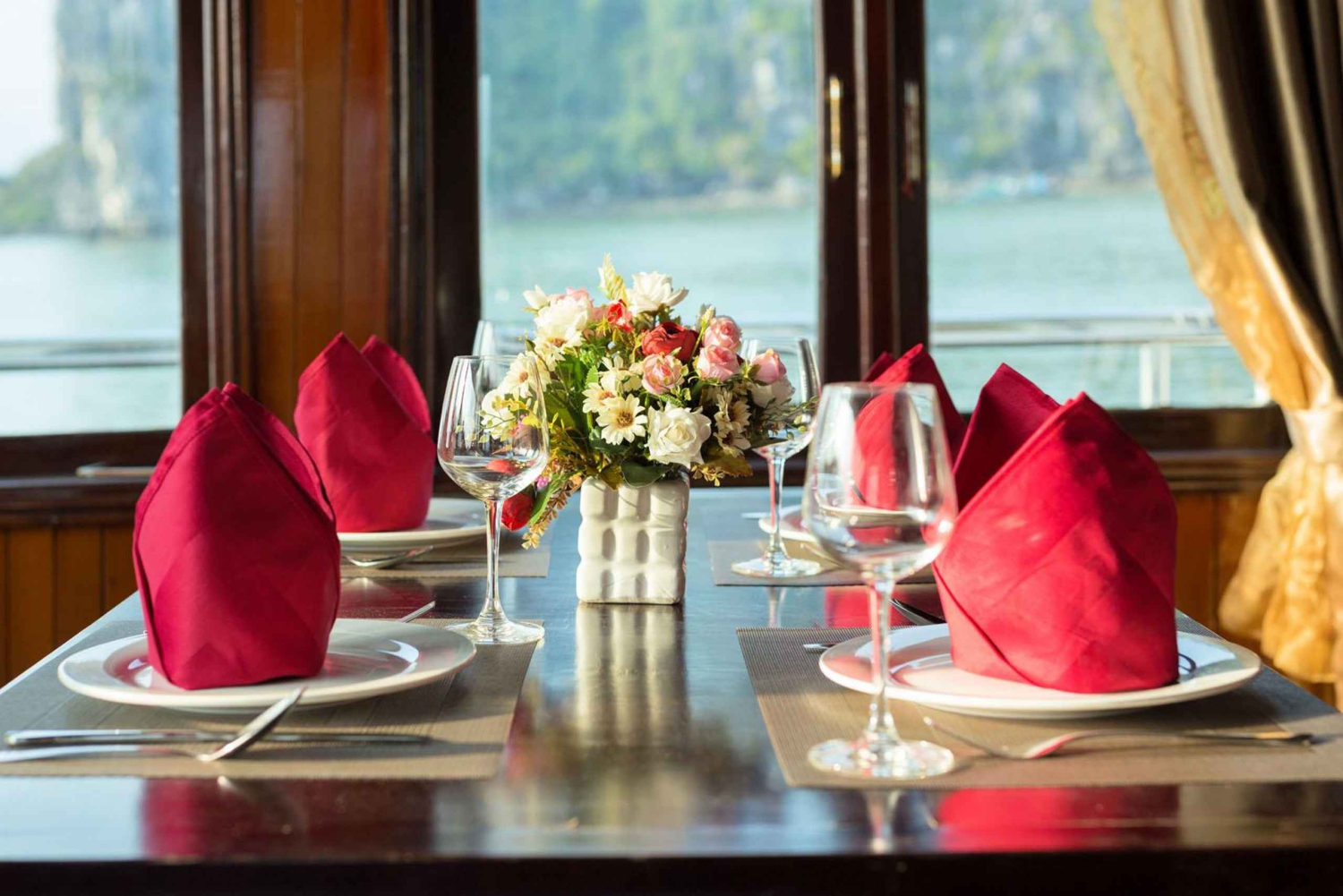 Vakna tidigt för att se soluppgången från soldäcket och fortsätt sedan att beundra utsikten över bukten med en kopp te eller kaffe under frukostbuffén. Börja dagen med ett besök på Halong Bay Pearl Farm där du får lära dig mer om de berömda Halong-pärlorna och den långa odlingsprocessen.