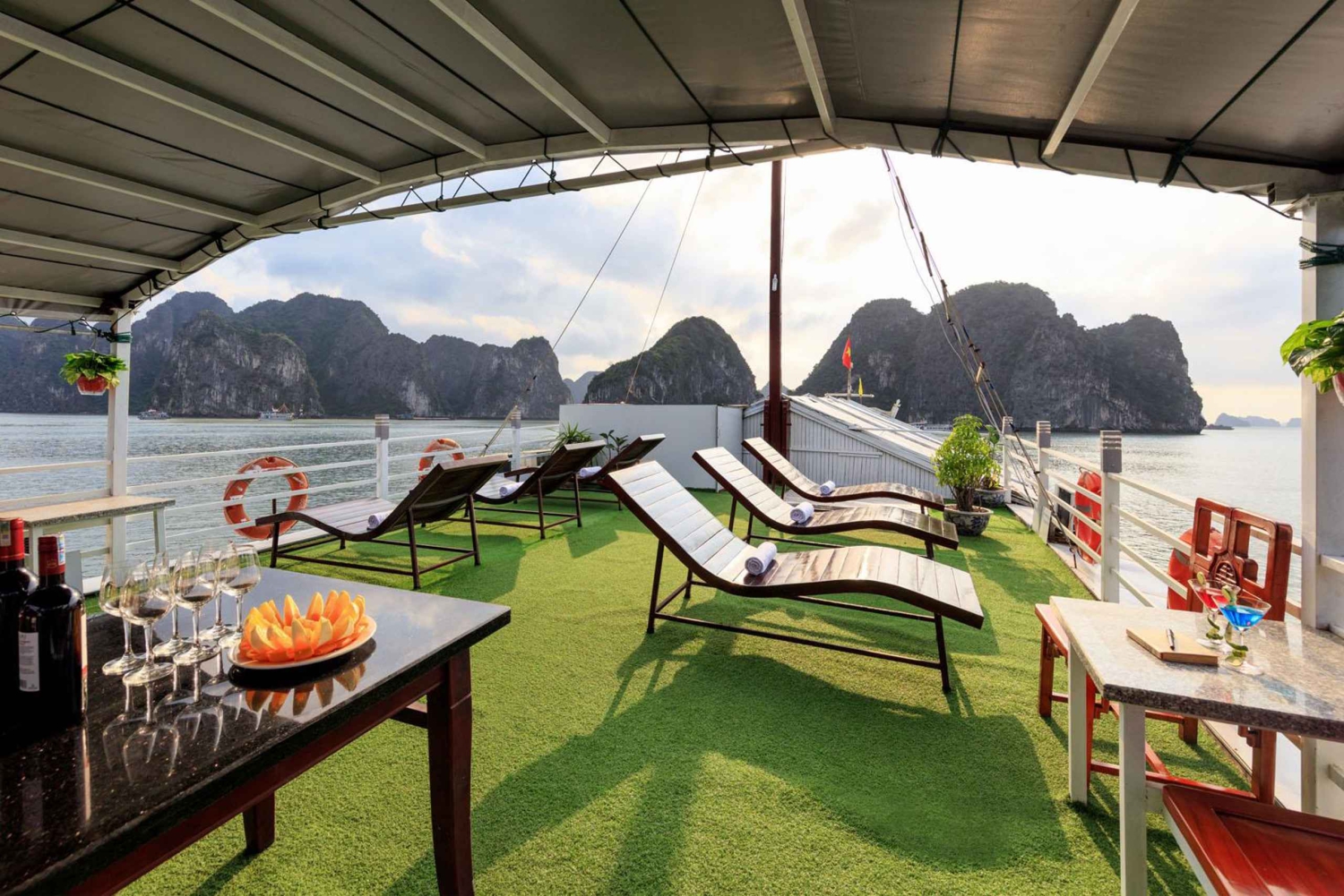 Utforska höjdpunkterna i Halong Bay på en kryssning från Halong, inklusive Sung Sot Cave och Ti Top Island. Beundra naturens underverk, simma i bukten, paddla kajak, smaka på vietnamesiska rätter och mycket mer.