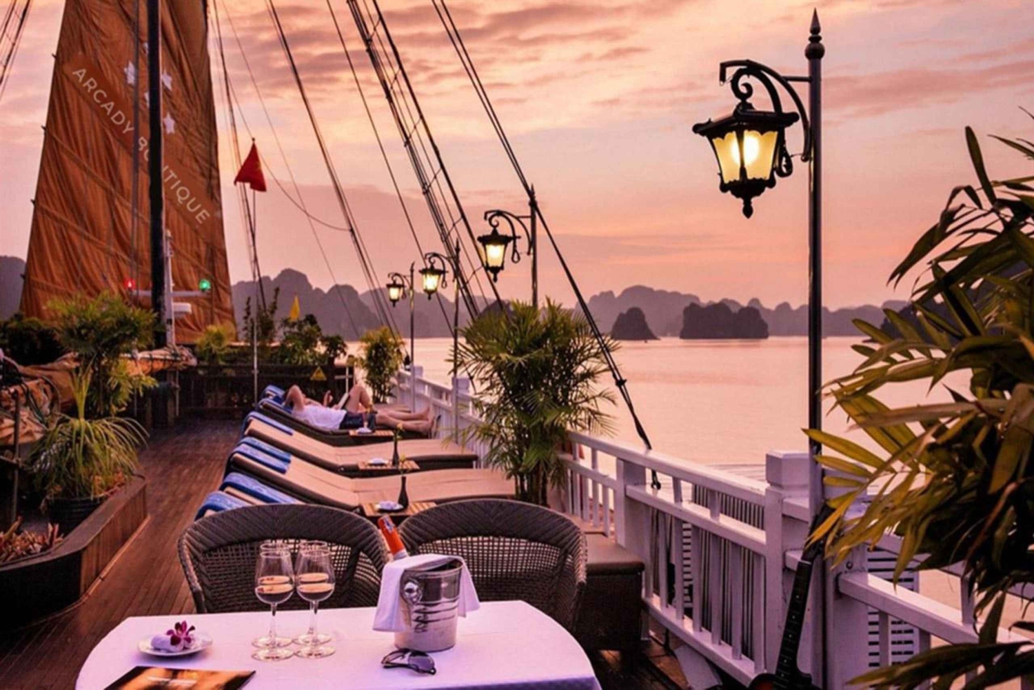 1 natt sömn på vår lyxiga Arcady kryssning 5 stjärnor på Halong Bay