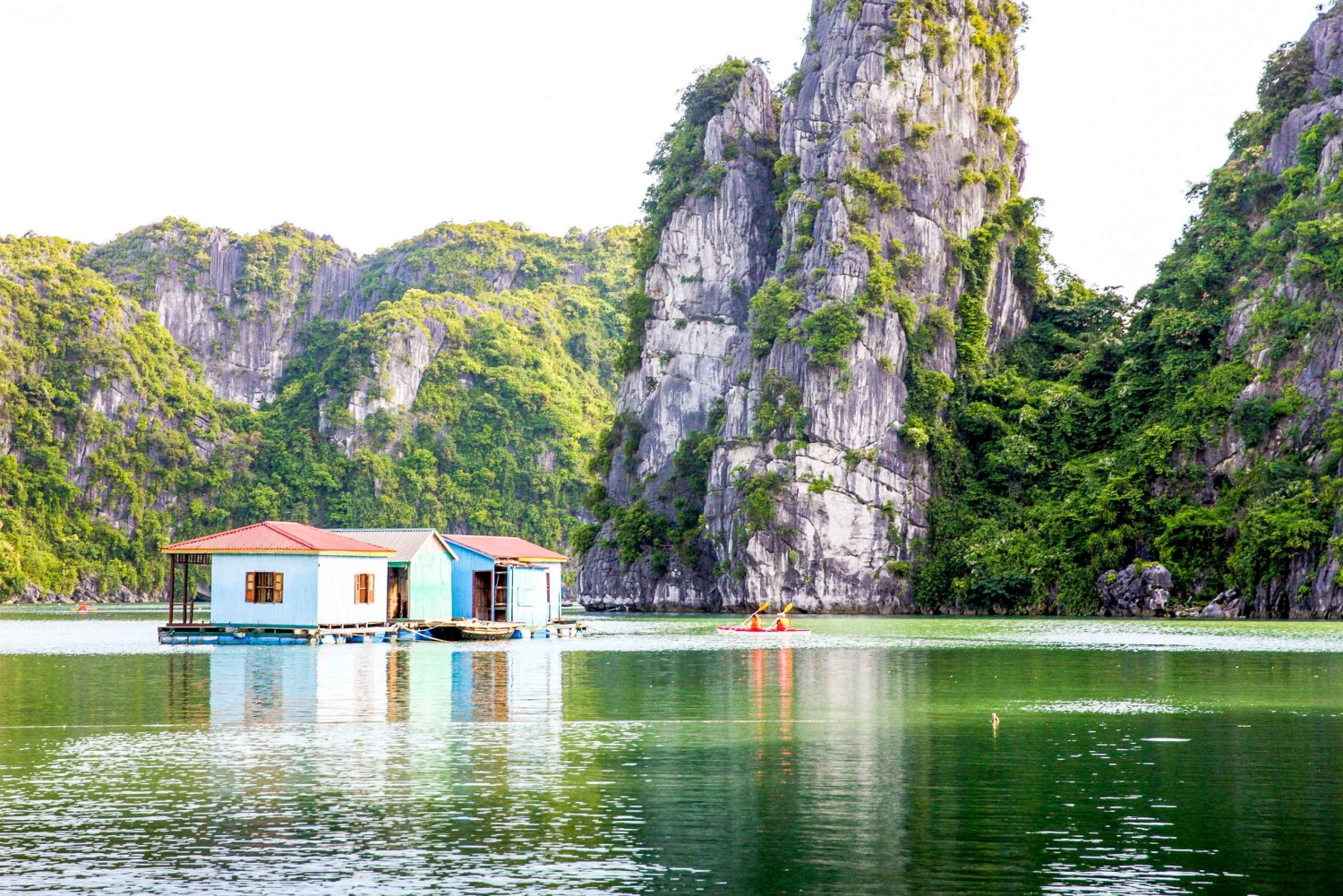 Following pick-up from your hotel in the Old Quarter of Hanoi at around 8:00 AM, depart for Ha Long Bay and journey to Tuan Chau Port for an estimated arrival time of 12:00 PM. Complete all your check-in formalities, and then enjoy a set menu seafood lunch as you set sail across the emerald green waters. Marvel at the thousands of limestone karst islands, islets and rock formations emerging from the water in curious shapes. Take part in a kayaking activity and venture close alongside the limestone cliffs. Explore a tranquil bay or hike to Ti Top Island to get a panoramic view of Ha Long Bay from the top of the mountain. Swim in the inviting waters, weather permitting.