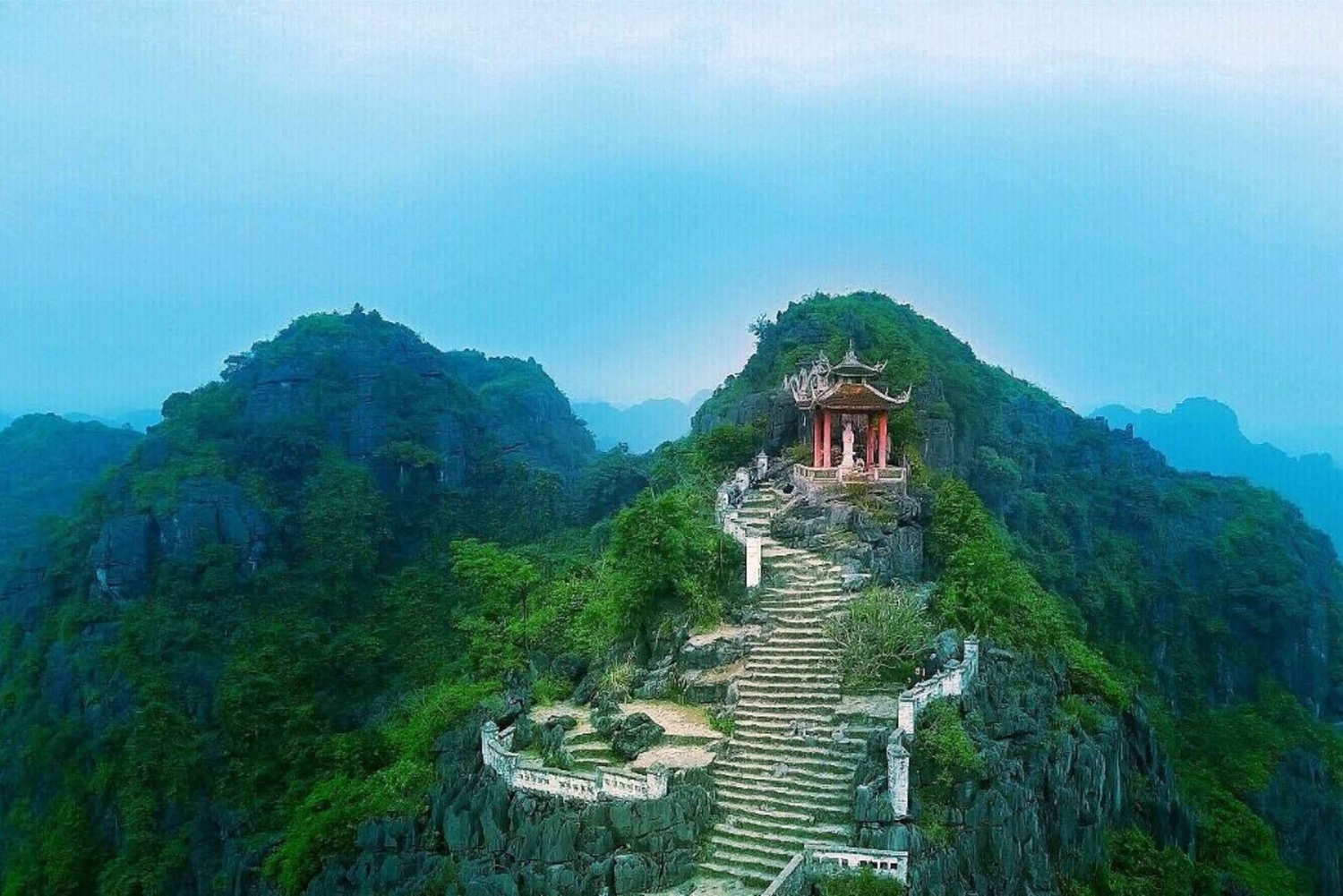 ✓ Return to the Limousine bus and head to Mua Caves. Hike up nearly 500 steps to the top of Lying Dragon Mountain for panoramic views of Tam Coc’s winding rivers and breathtaking landscape.