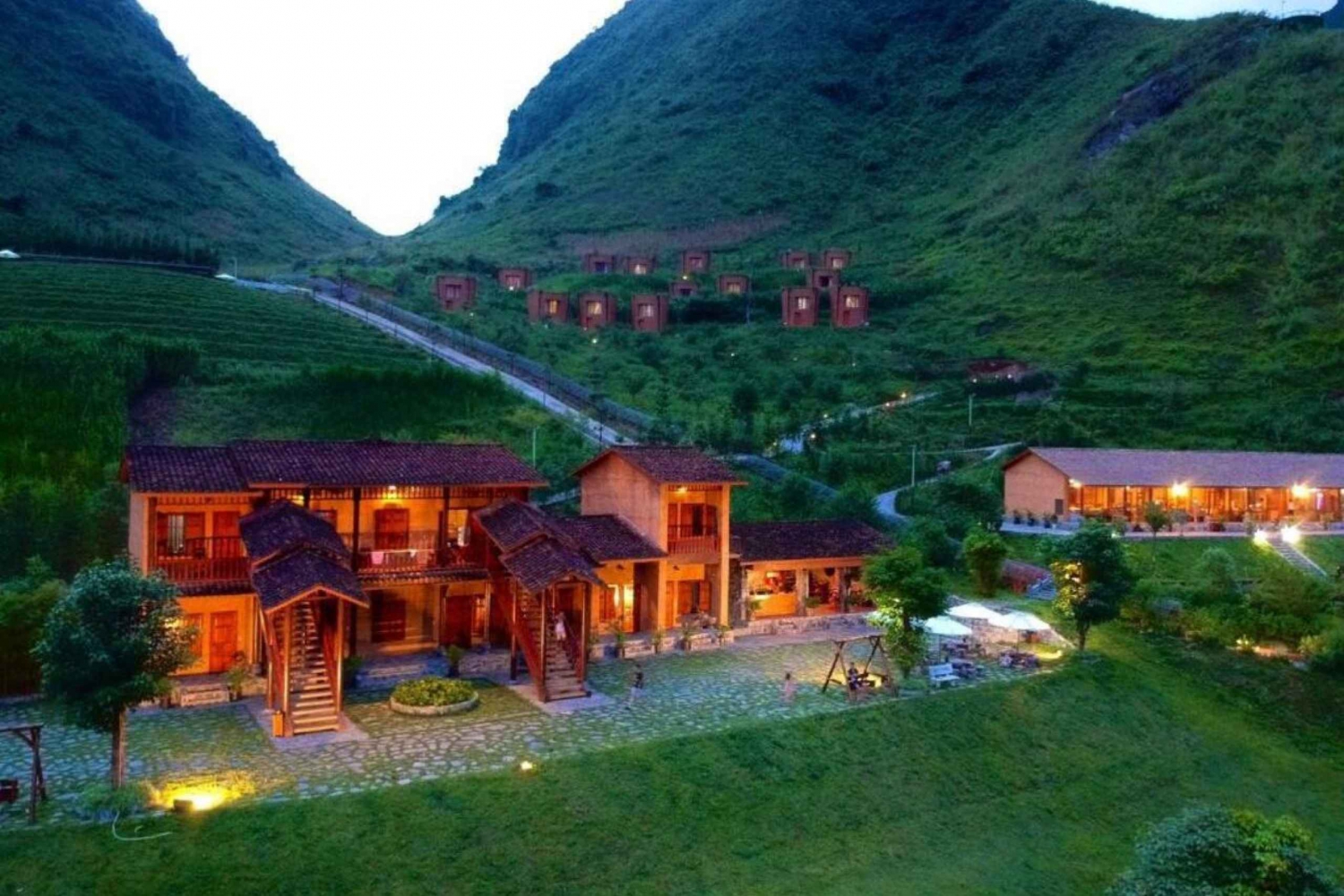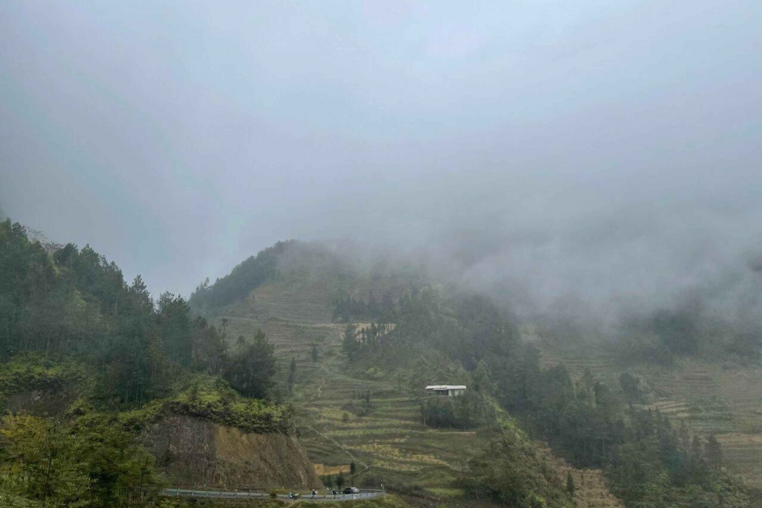 Drive through winding roads, rice terraces, and forested hills. Stop at Quan Ba Heaven Gate and see the 'Twin Mountains'. Enjoy lunch on the way before reaching Yen Minh, where you’ll check in to a cozy homestay and share dinner with locals.
