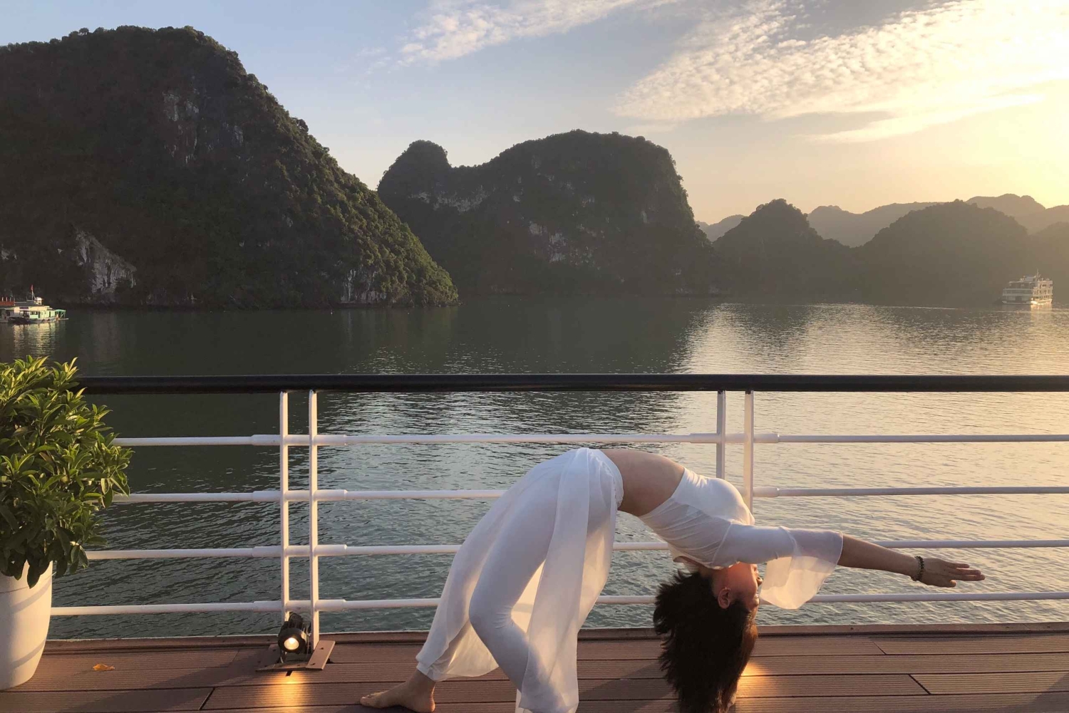 Discover Halong & Lan Ha Bay on 5 star cruise with balcony cabin with bathtub sea view, kayak, Taichi, cooking class & fine dining.