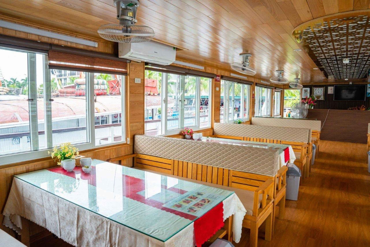 12.30: Have lunch with Vietnamese seafood be served on board by the crew while the boat will take you around the most beautiful areas of the bay