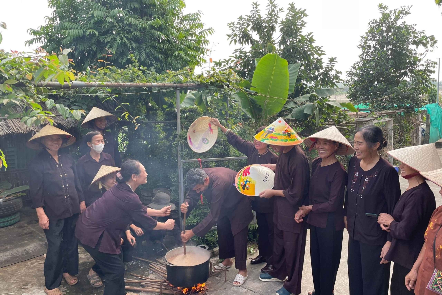 Guests take part in a cooking session to make chè lam and bánh đúc, traditional Northern Vietnamese treats, with local artisans.