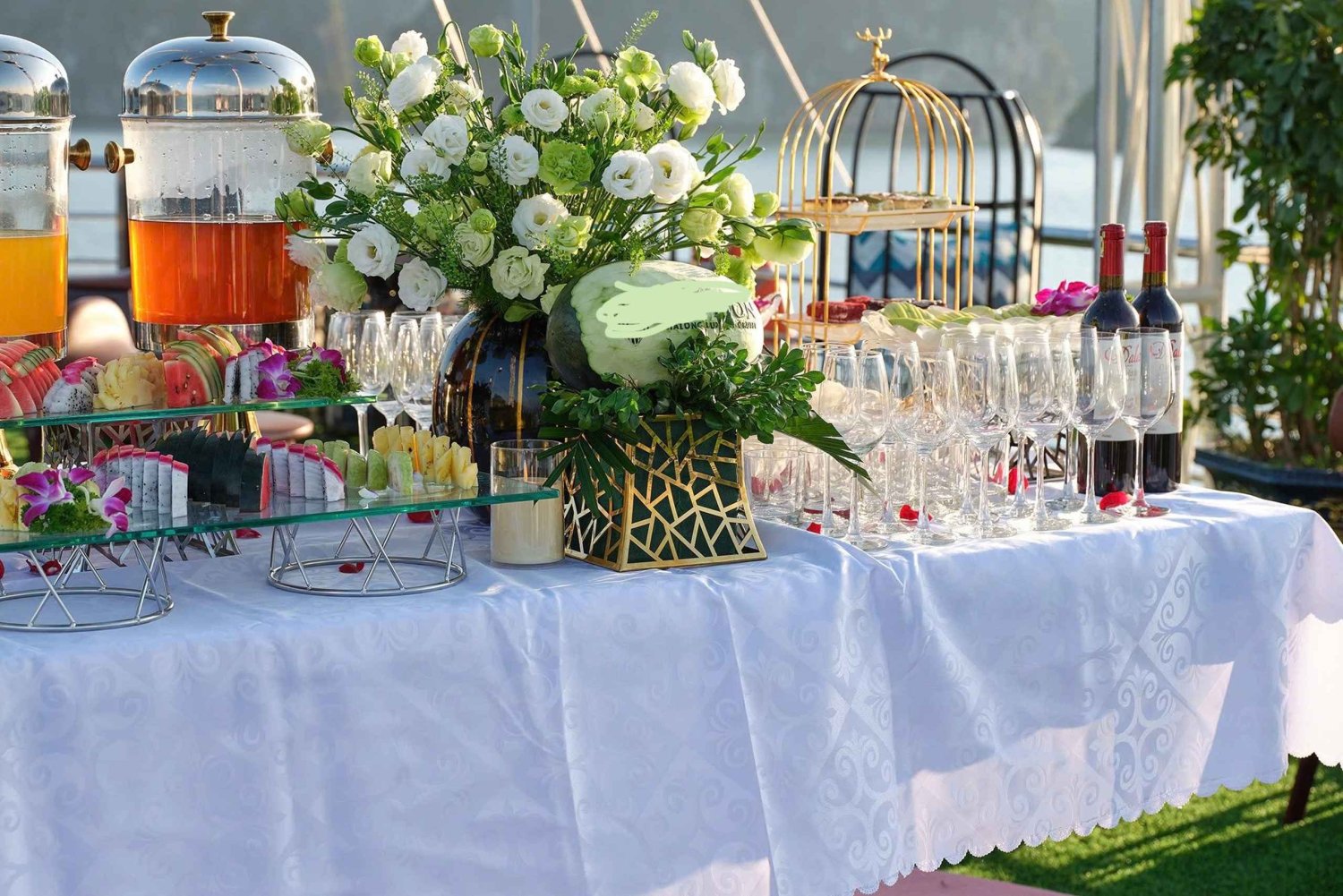 As you cruise back to the harbor, enjoy a sunset party with: red wine, tea, cakes, shrimp Chips, fresh fruits,.. and music to see spectacular sunset in Ha Long Bay.