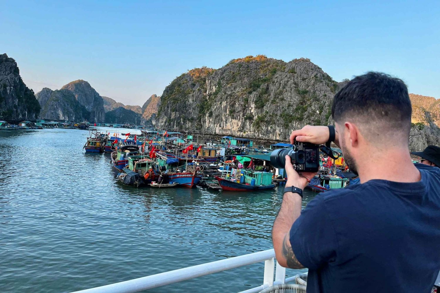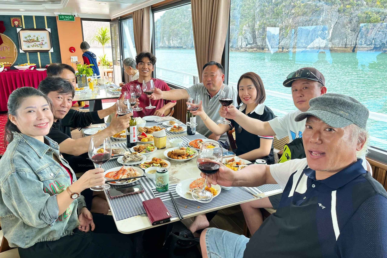 Start with pickup from your hotel in Hanoi's Old Quarter and relax on the transfer to Beo Harbour on a comfortable bus. Take in the views on a scenic coastal drive from Cai Vieng Port to Beo Harbour. Hop aboard a spacious boat and be welcomed with a drink and an introduction on cruise and itinerary.