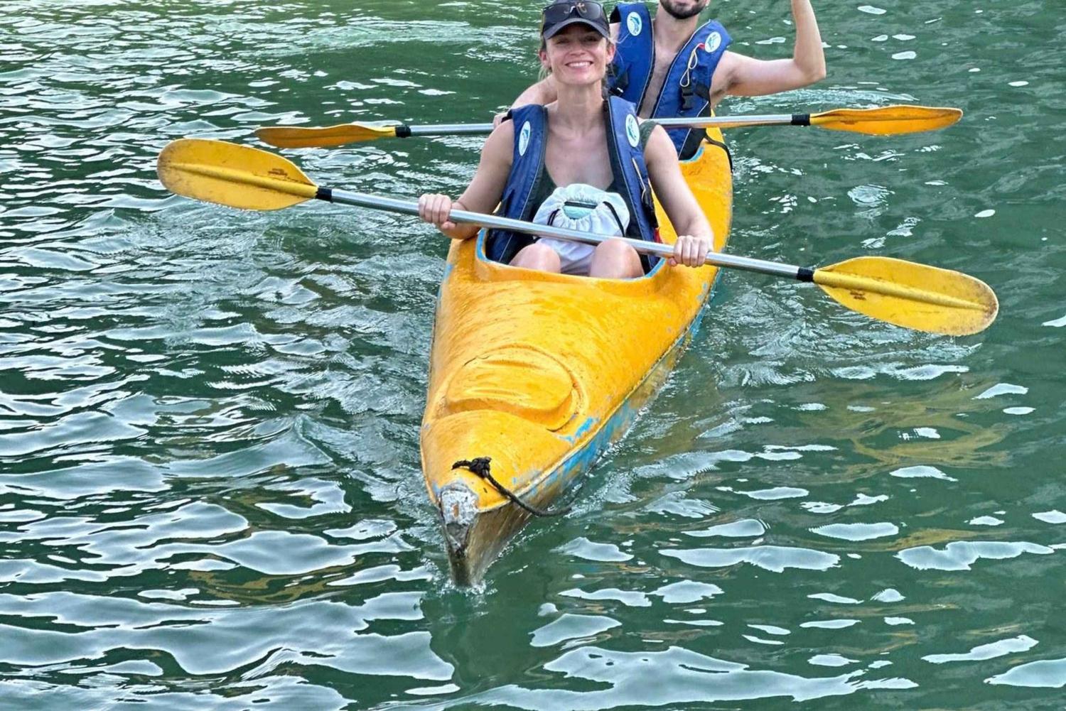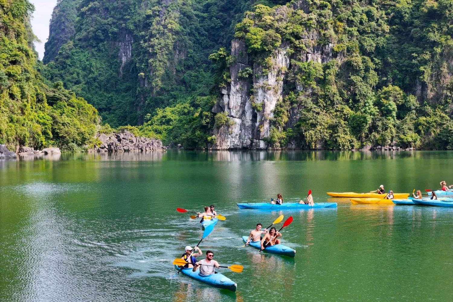 14:30: Explore the pristine lagoon area of Lan Ha Bay by kayak. Paddle through the Dark and Bright Caves, natural tunnels, and majestic archways. This area is both stunning & ecologically protected.