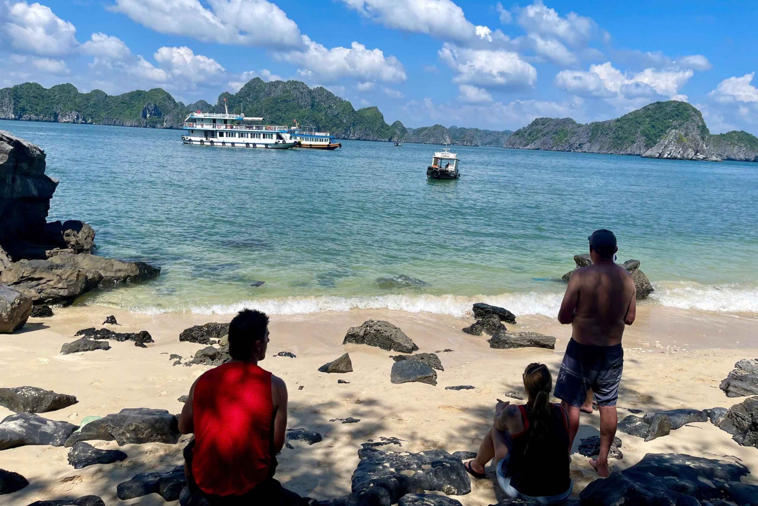 16:30: Stop at Ba Trai Dao Beach for swimming and jumping from the boat. This beach is remote, quiet, and less touristy - ideal for discovering temple beaches, hidden lagoons, and scenic rock arches.