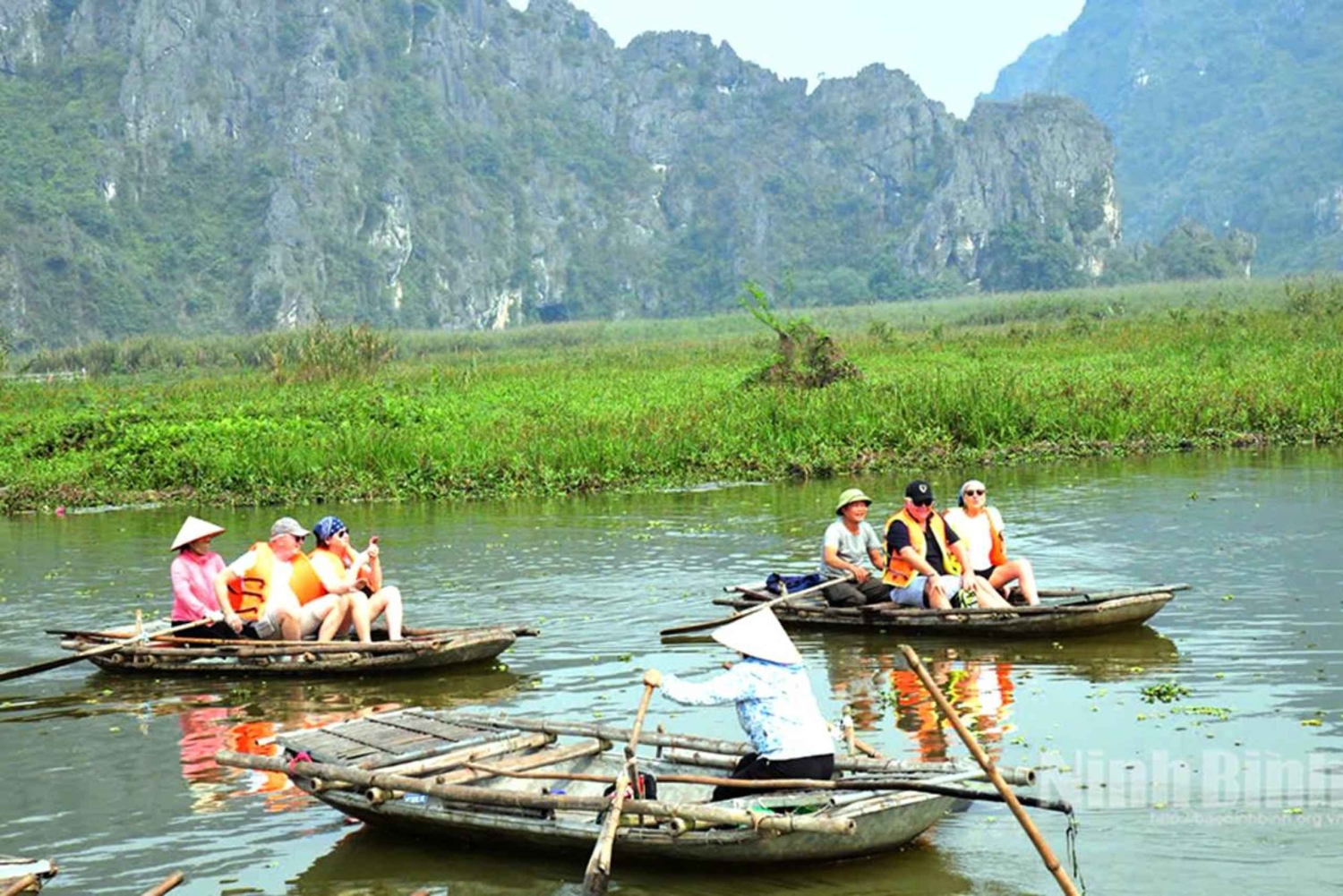 Explore the Van Long Nature Reserve and Bai Dinh Pagoda on a day trip from Hanoi. Enjoy a boat ride on the calm waters, admire the vast reed fields, and see the gold-plated Buddha statues.
